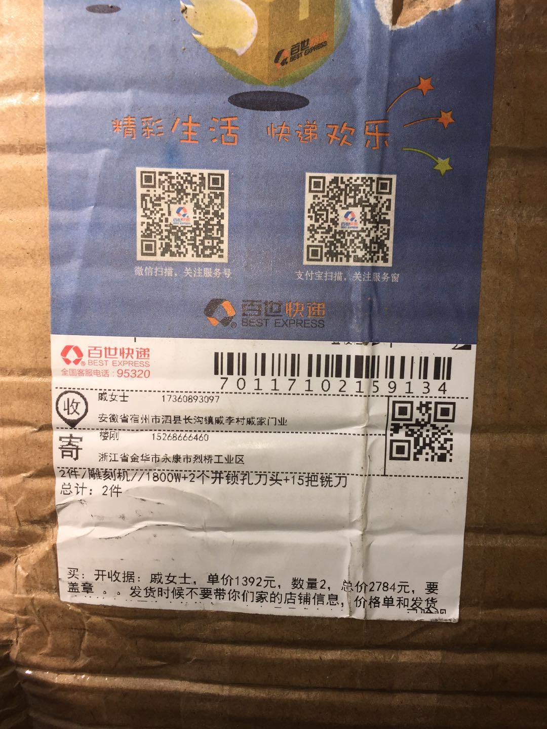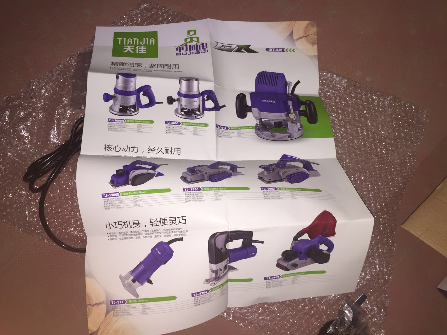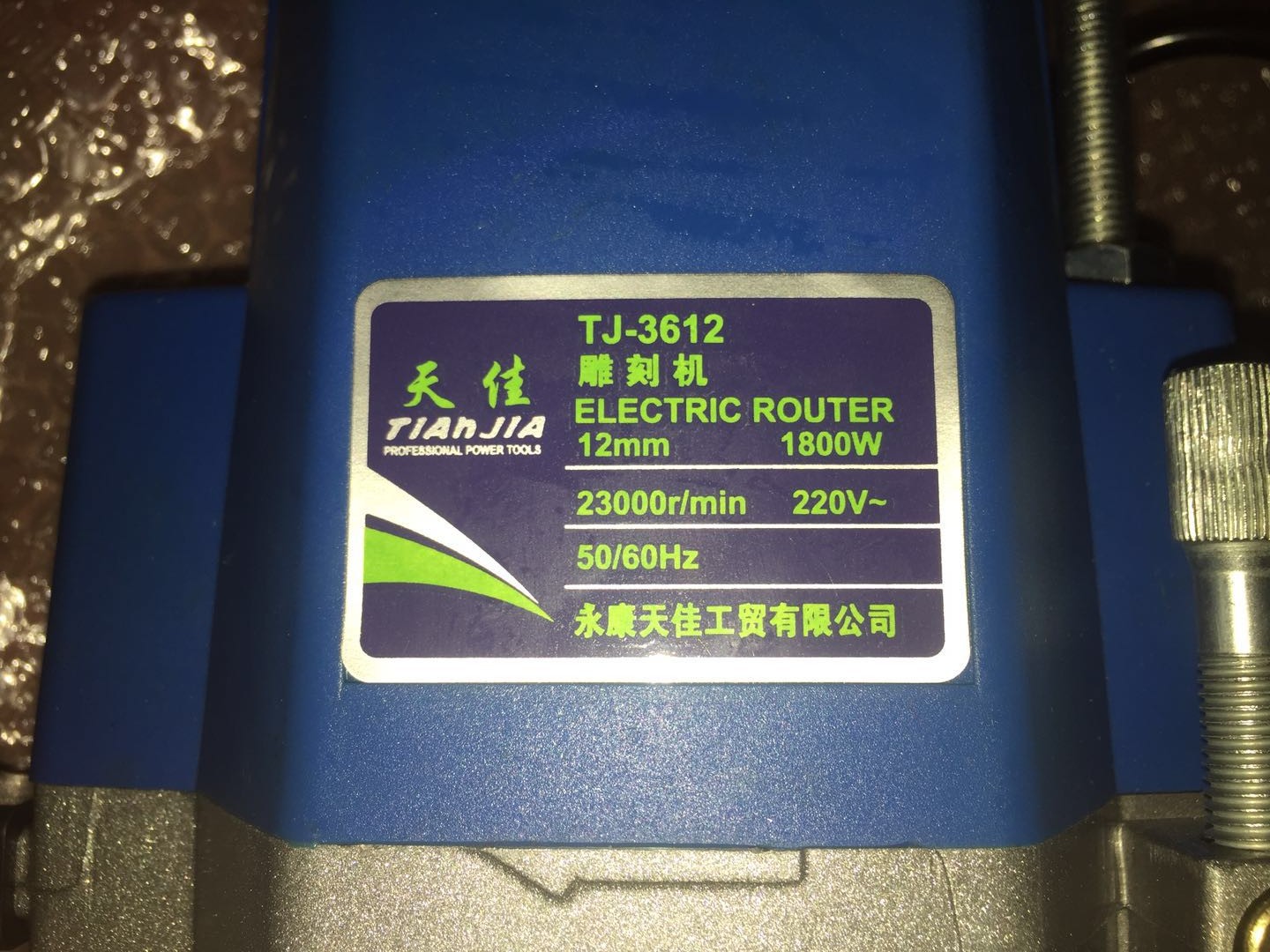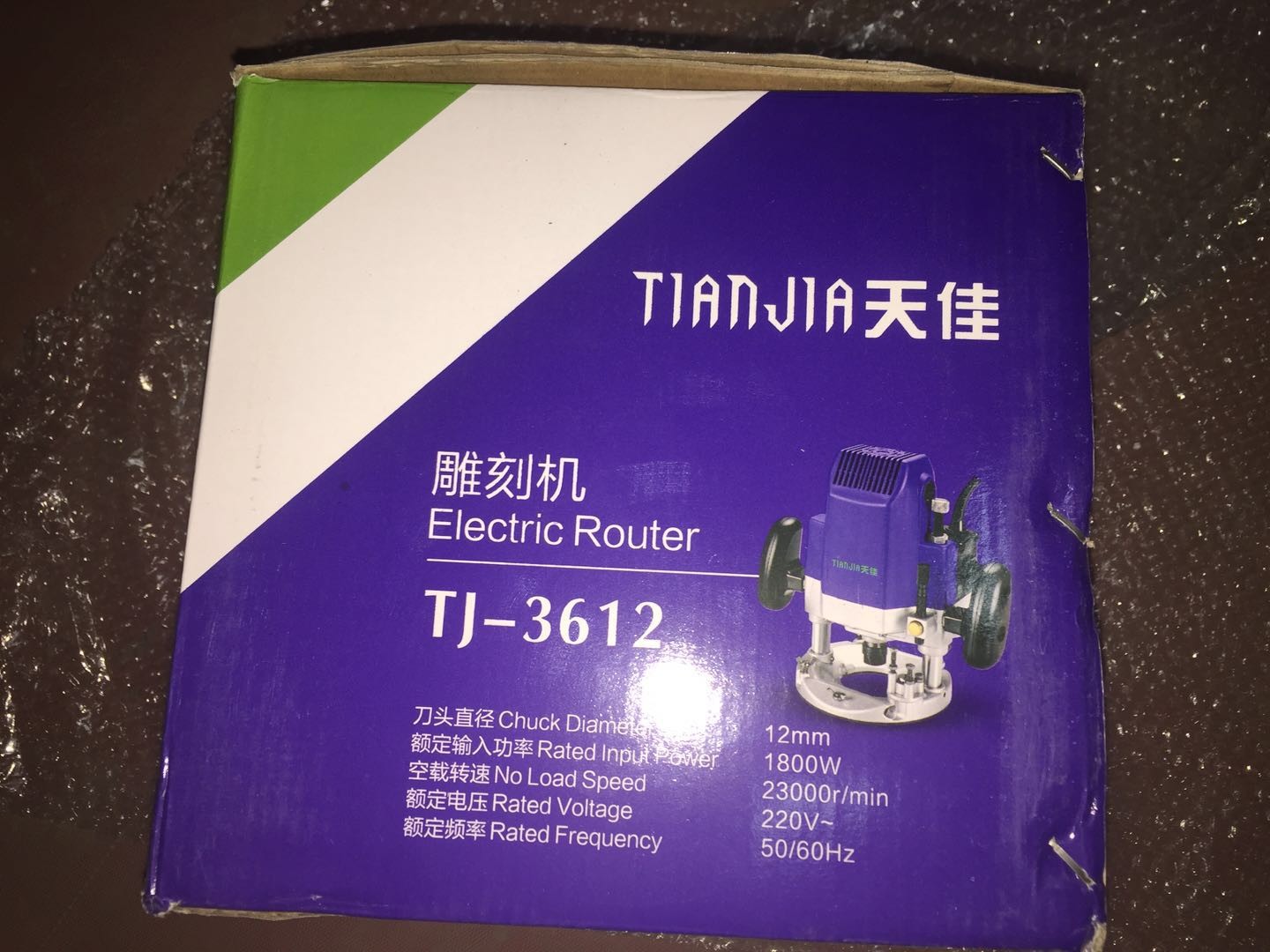 2017年11月14日,本人生活需要已2784元的价格在宿迁畅然商贸有限公司开设的京东店铺“畅然家装建材专营店”购买了2台商品为多功能修边机木工雕刻机开槽机电木铣开榫孔木工装修电动工具 1800W+2个开锁孔刀头.型号:TJ-3612。订单编号:64736873460.